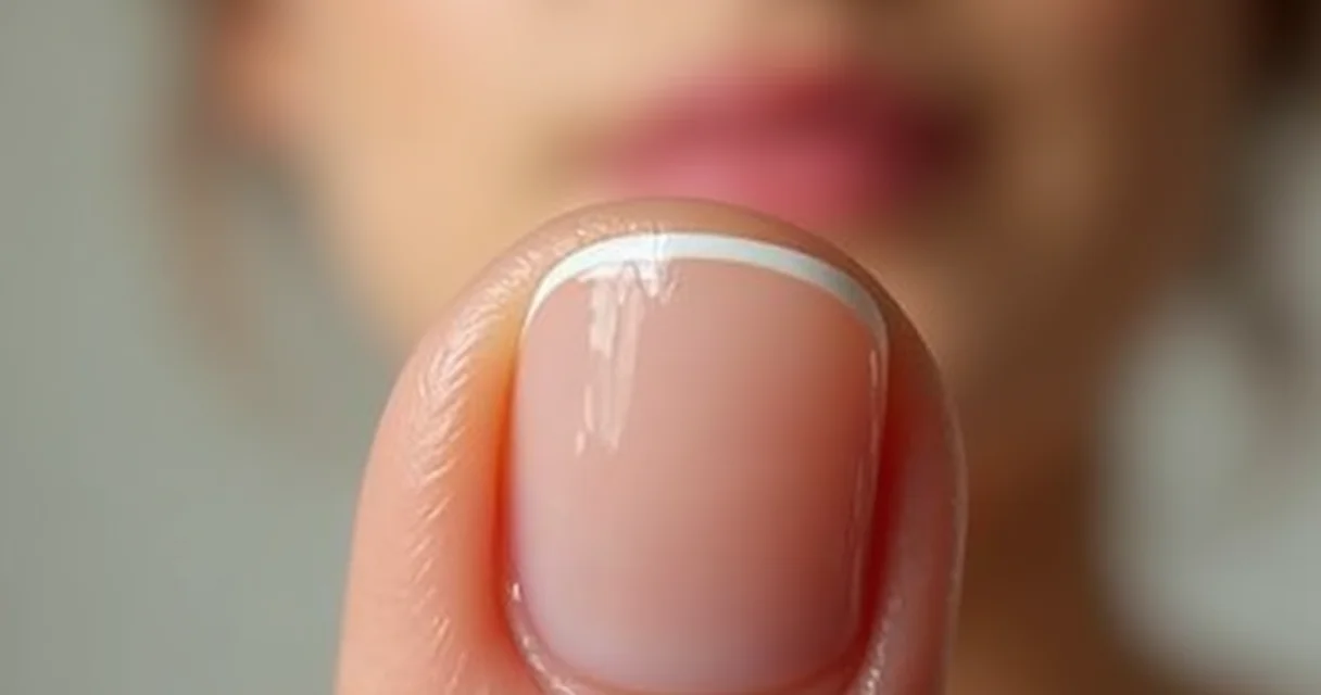Visão de cima de unhas recém-feitas com base fortalecedora, exibindo um acabamento impecável e uniforme, com iluminação que realça o brilho sutil.