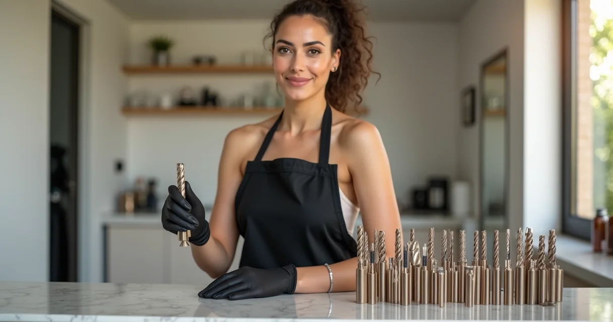 Para nivelar e dar forma aos alongamentos, as brocas de topo reto, ou cilíndricas, são indispensáveis. Elas entregam um trabalho rápido e eficiente. E para aqueles cantinhos difíceis ou a parte de baixo da unha, as brocas agulha são simplesmente perfeitas, removendo qualquer excesso sem drama. Para uma visão mais aprofundada nos tipos e funções, vale a pena conferir este guia completo sobre brocas para unhas: Tipos de Brocas para Unhas.