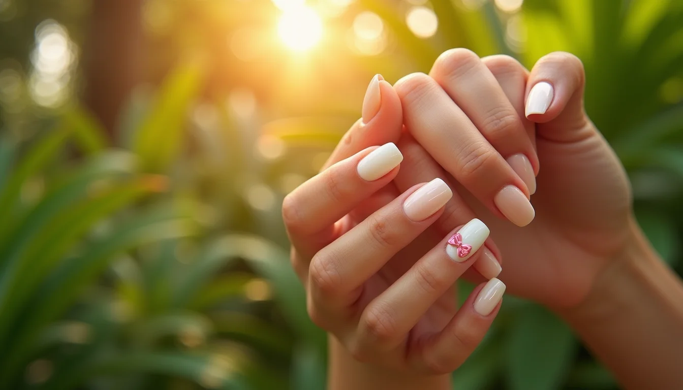 Unhas curtas bem cuidadas com um laço discreto são a prova de que a elegância está ao alcance de todas. O segredo é a proporção e a escolha de cores harmoniosas.