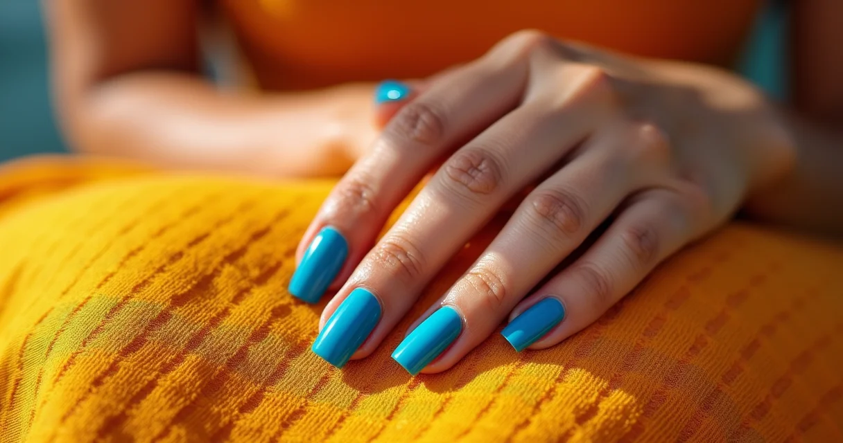 A Mágica do Esmalte: Aplique uma camada de base. Em seguida, passe duas camadas finas do seu esmalte azul preferido, esperando a primeira secar. Se quiser um efeito diferente, use um palito para criar desenhos ou um boleador para pontos.