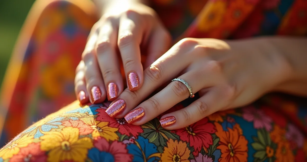 A dica de ouro para unhas com glitter é usar uma boa base e um top coat de qualidade para selar tudo e garantir o brilho por mais tempo.