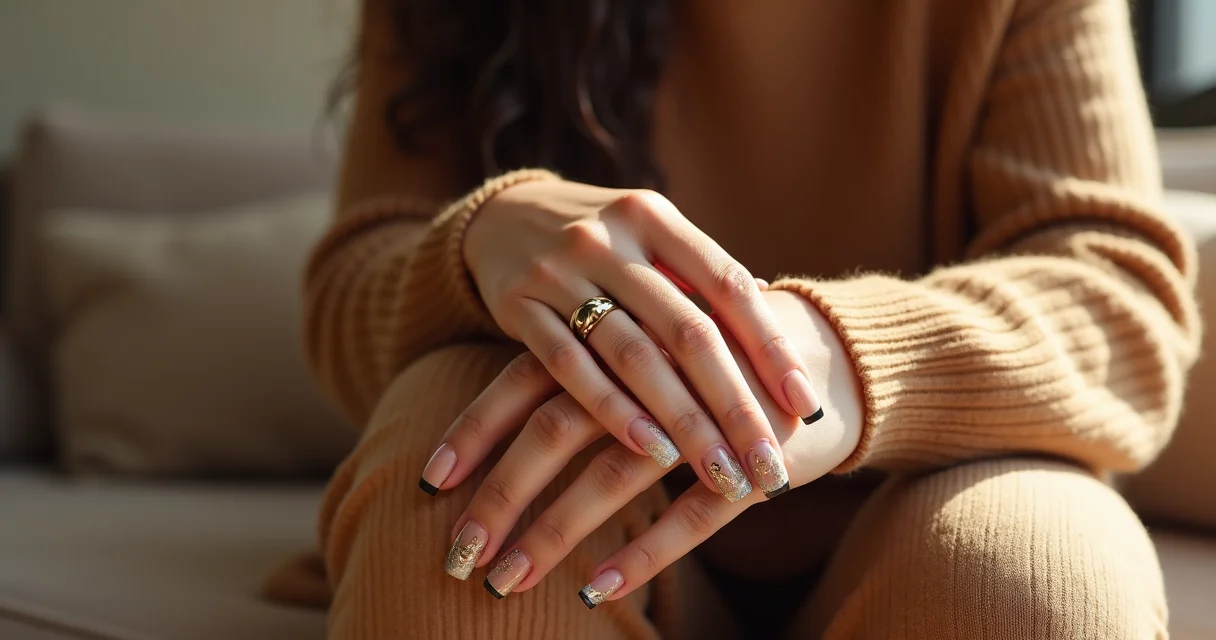 A folha de ouro, aplicada em pontos estratégicos ou cobrindo a ponta da unha, confere um ar de joia, super sofisticado. Para um evento noturno, um marrom bem escuro com detalhes em prata ou bronze pode ser a combinação perfeita. A ideia é adicionar elementos que complementem o luxo do marrom sem exagerar, mantendo a elegância que a cor já oferece. Para mais ideias, confira inspirações de unhas marrons que estão bombando.