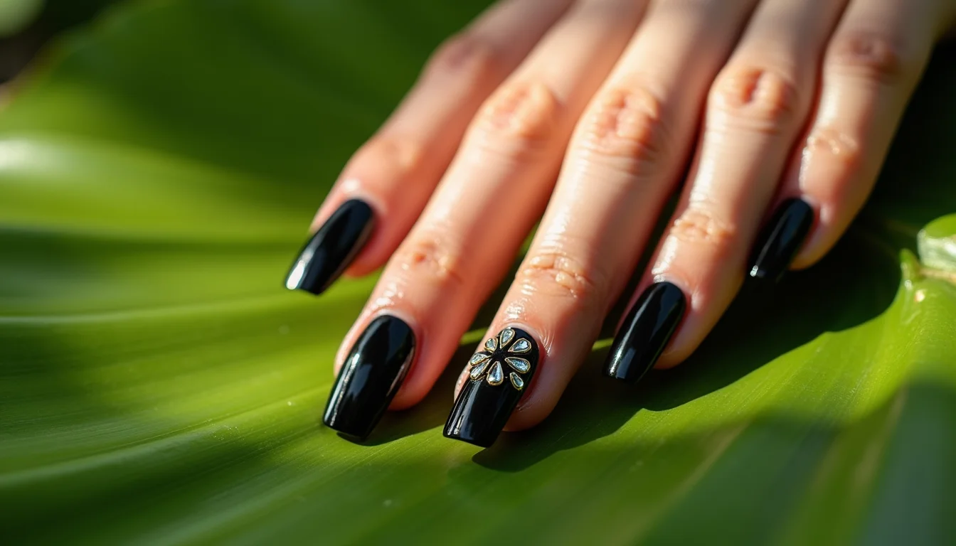 Experimente variações com glitter ou pedrarias na próxima cliente, e observe como o preto se transforma em tela para a criatividade.