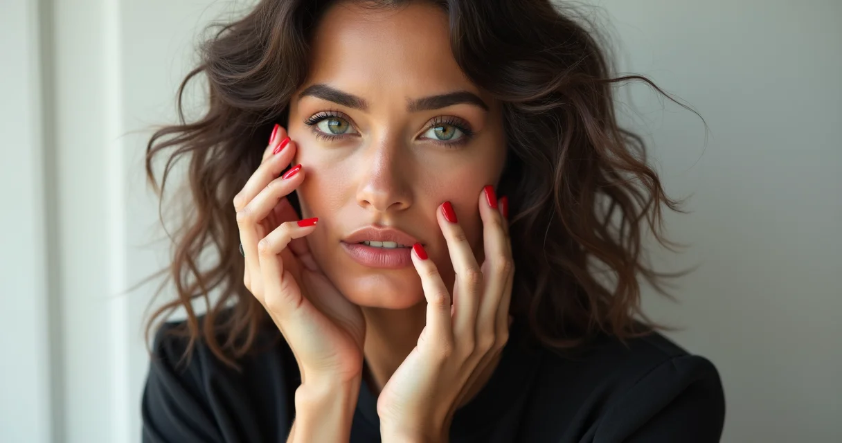 A verdade é a seguinte: o formato quadrado já dá uma sensação de ‘base sólida’. A linha vermelha na ponta cria um contorno visual que alonga a unha de forma ilusória, mesmo ela sendo curta. Pode confessar, é um truque infalível.