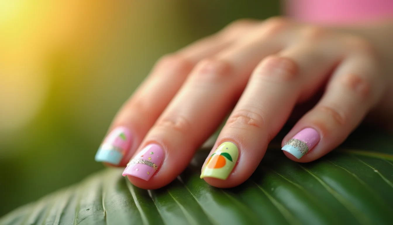 Cores pastel e glitter encapsulado reinam. Tons como rosa bebê, lilás e azul claro combinados com brilho não tóxico criam um visual lúdico e duradouro.