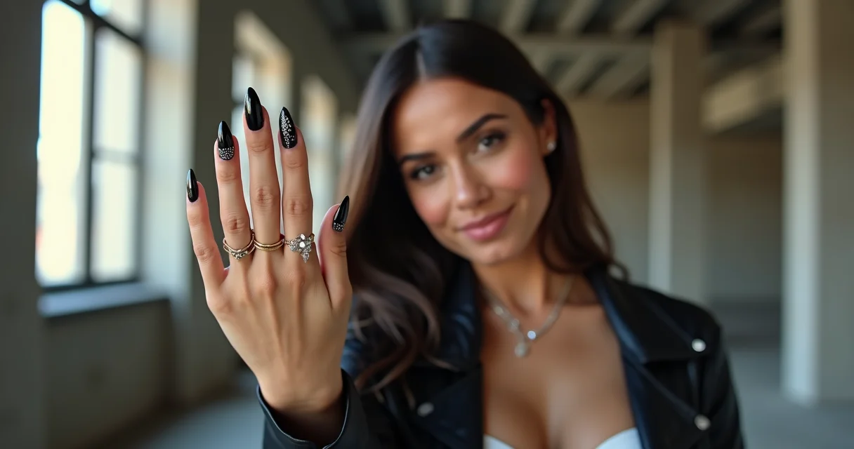 Vamos combinar: a amendoada é mais prática e resistente. A stiletto tem ponta extremamente fina e quebra com facilidade no dia a dia. A amendoada alonga os dedos com elegância, mas sem o risco constante. Para quem trabalha com as mãos ou busca durabilidade, a amendoada preta é a escolha inteligente.