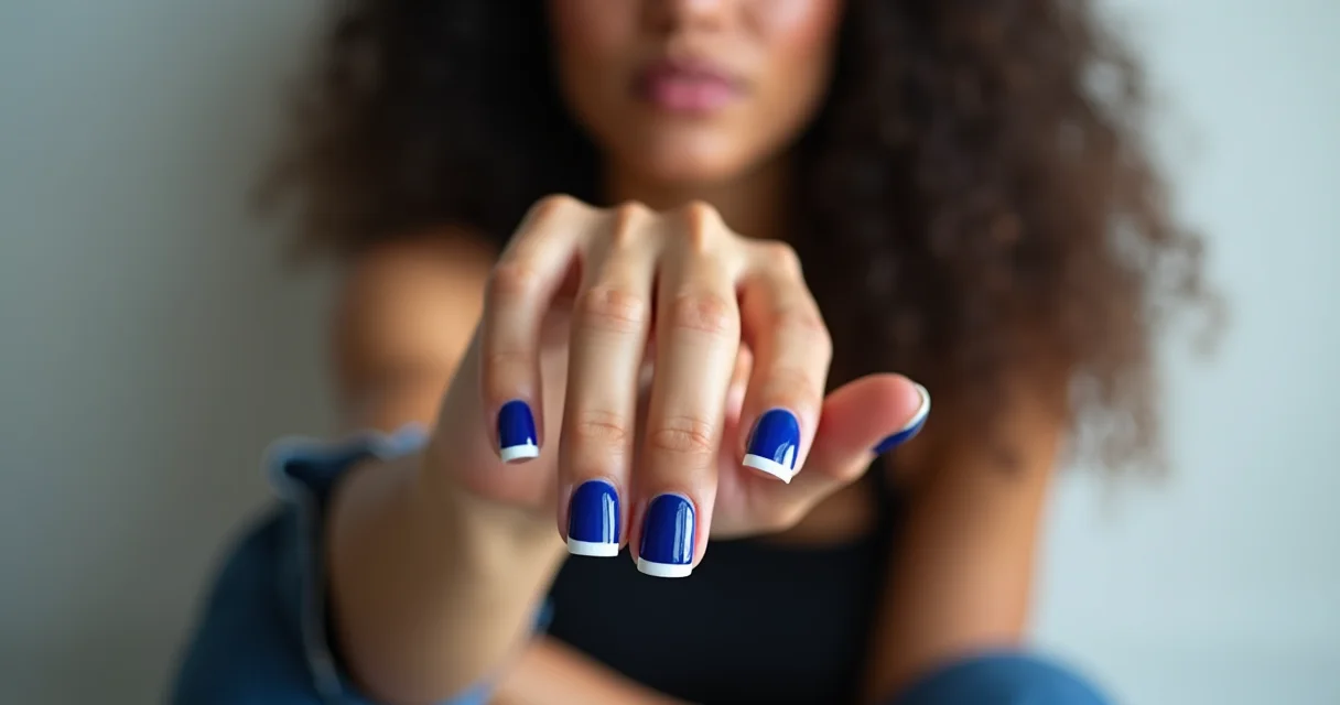 Unha Azul com Francesinha Branca: O Detalhe que Transforma Qualquer Visual