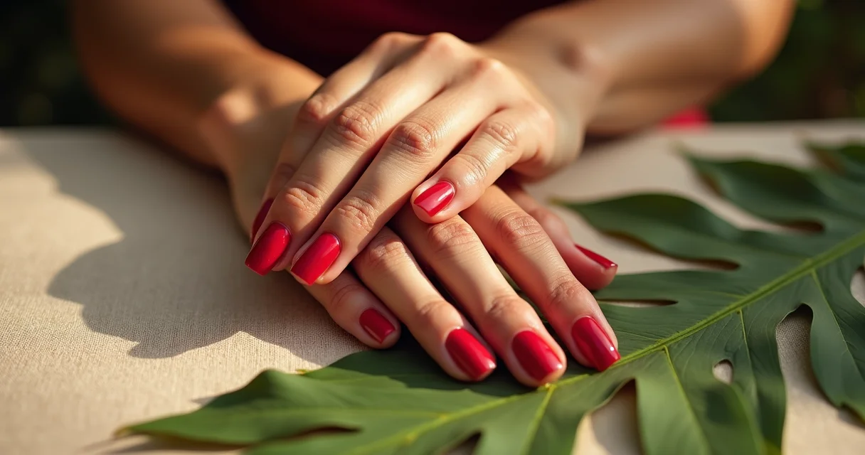 Unhas Encapsuladas: Para quem quer durabilidade e um efeito 3D, encapsular a unha com um gel e pedacinhos de glitter ou pigmento vermelho é uma opção.