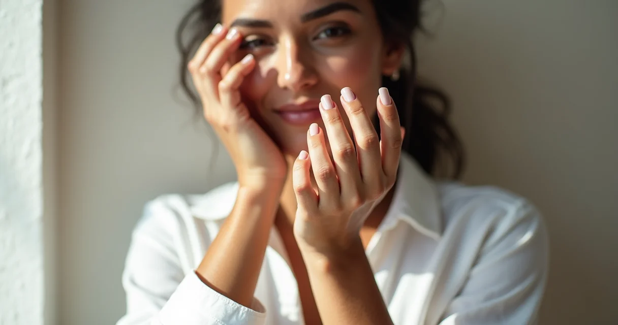 Aqui está o detalhe: a beleza das unhas transparentes e naturais está na esmaltação delicada que as valoriza. Usar uma base translúcida com um toque de brilho é a chave para um look