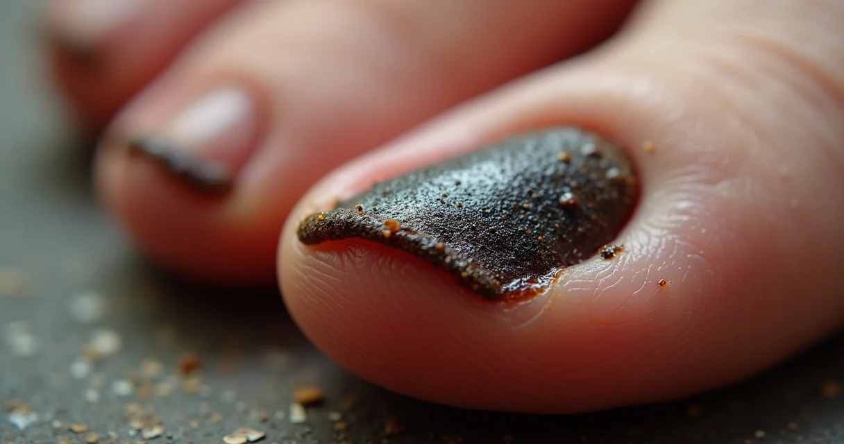 Mas não é só fungo, não. Pode ser um hematoma subungueal, aquele famoso ‘dedo batido’ que sangra por dentro e deixa a unha escura. Acontece, né? A gente tropeça, bate o pé, e pronto.