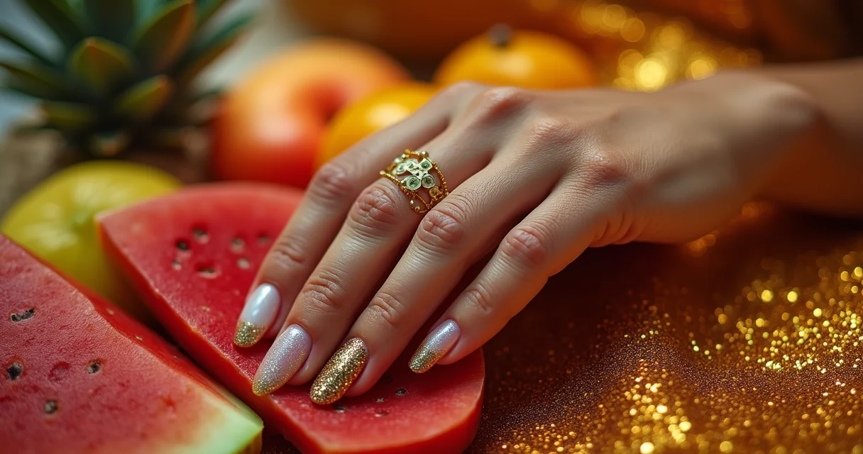 Brilho Sutil: Esqueça o exagero se não for seu estilo. Um degradê de glitter fino nas pontas ou um toque de esmalte cintilante sobre uma base clara já faz um efeito incrível. É o tipo de brilho que aparece quando você mexe as mãos, sabe?