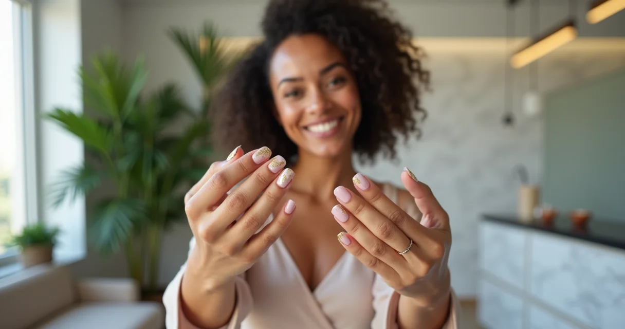 Dica da especialista: Para escolher o nude perfeito, observe o tom da sua pele. Nudes com fundo rosado para peles claras, e nudes com fundo caramelo ou pêssego para peles mais quentes. O segredo é encontrar um tom que ilumine suas mãos sem apagar a beleza natural.