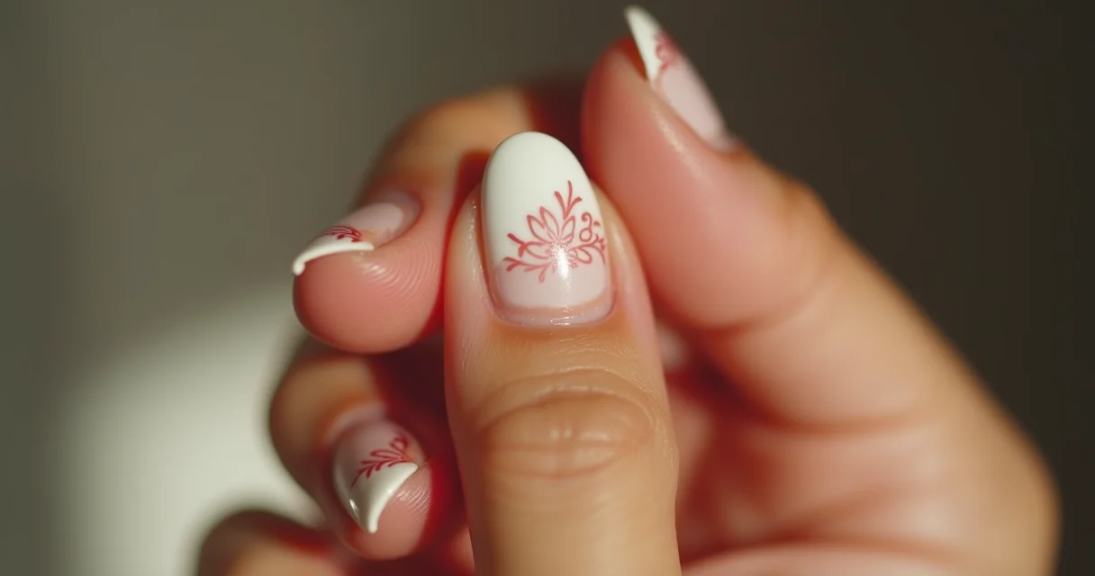 Formato amendoado delicado com francesinha micro em branco perolado, base rosa pálido.