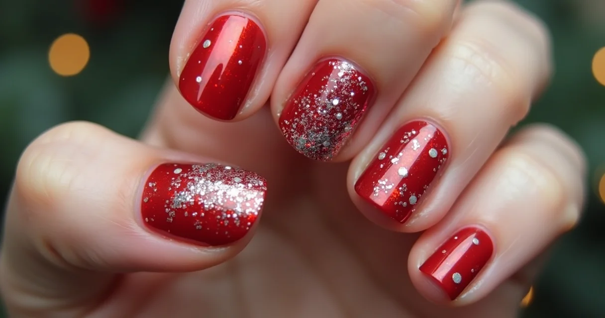 Em Destaque 2026: As unhas em gel para o Natal combinam durabilidade e brilho, com tendências que mesclam o clássico vermelho a elementos modernos como glitter, dourado, prata e minimalismo.