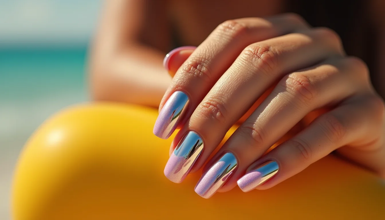 O termo ‘chrome nails‘ virou sinônimo de unhas com acabamento espelhado. Essa técnica traz um toque futurista e sofisticado para qualquer look, dominando as redes sociais.