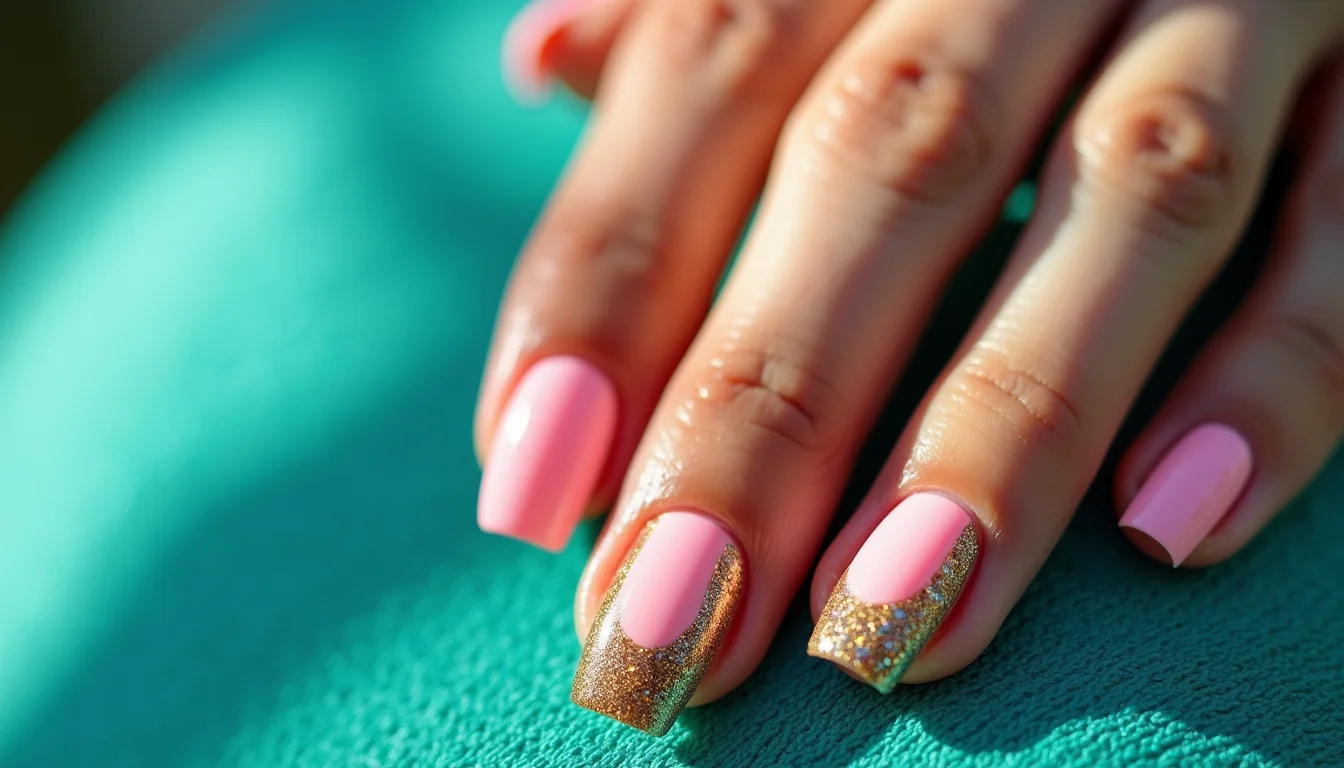 A unha bailarina baby boomer com glitter é a escolha ideal para eventos especiais.