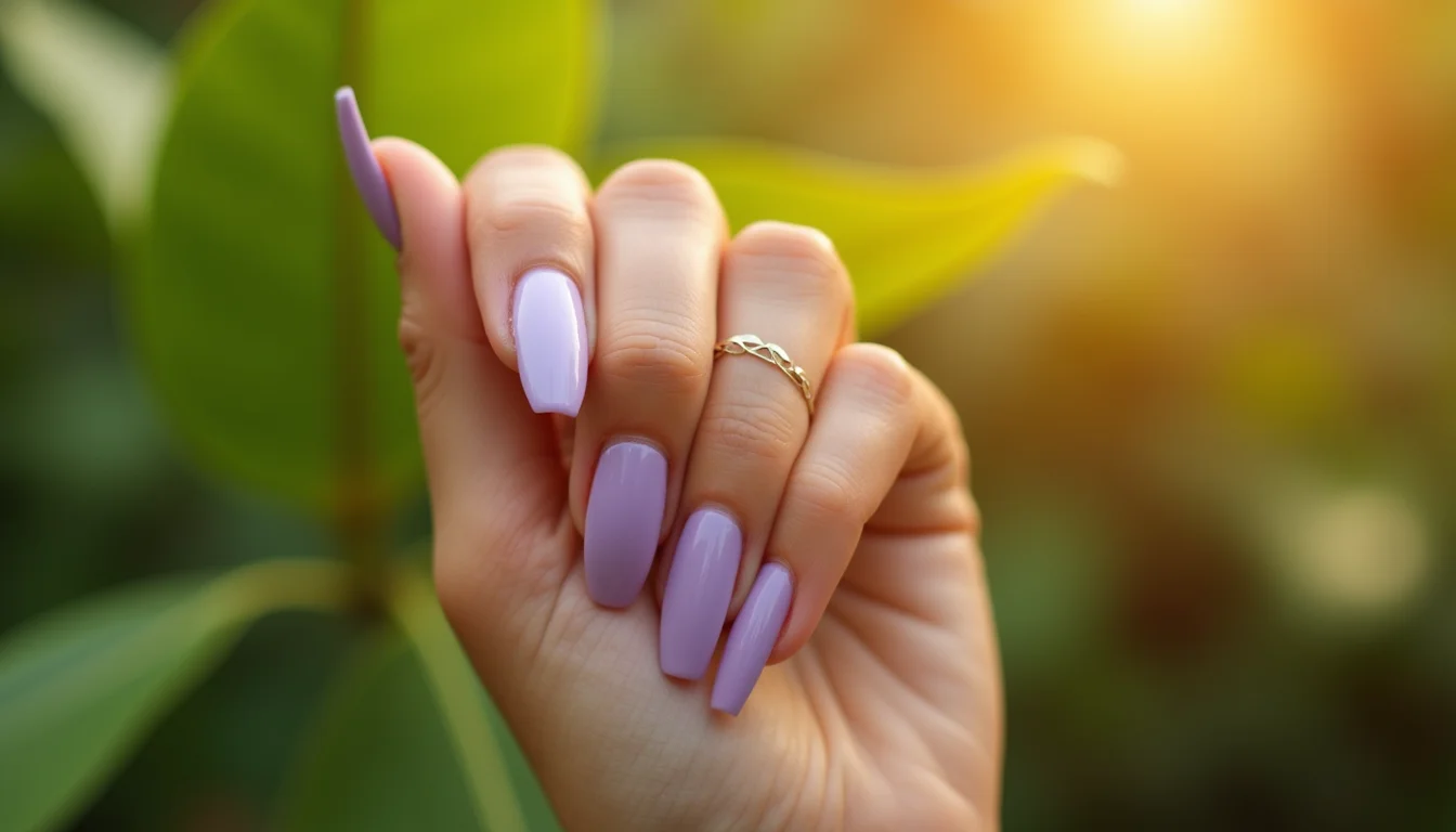 O lilás lavanda encontra o brilho prata no anelar, criando um contraste etéreo que dança sob a luz natural.