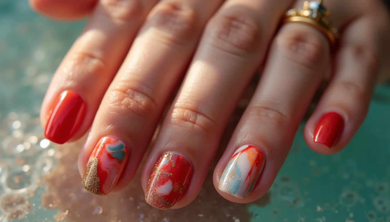 Unhas Marmorizadas com Folha de Ouro
