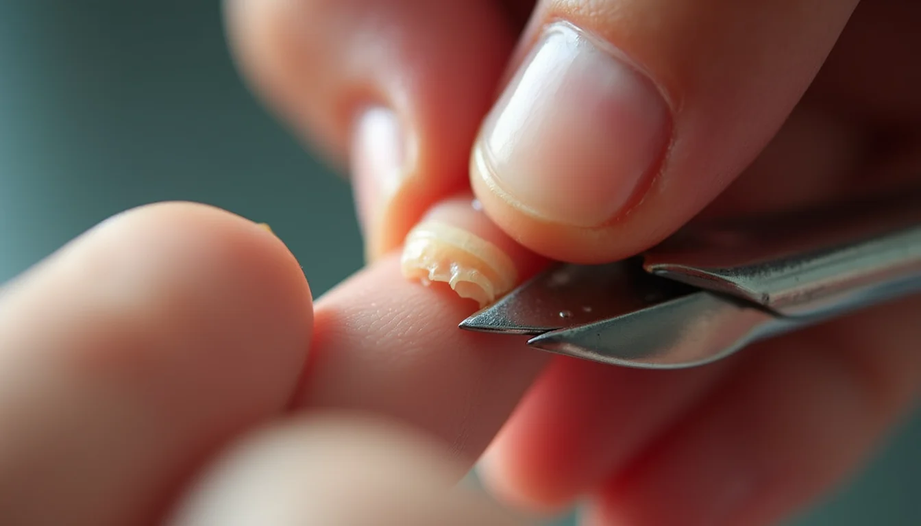 - Passo 4: Corte a parte oca (se necessário) – Com o alicate esterilizado, corte cuidadosamente a porção descolada da unha, seguindo a linha natural.