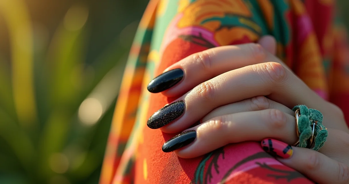 Combinação com Glitter: Pense em uma unha preta com glitter rosa neon espalhado, ou um degradê que vai do preto para o neon. É festa nas mãos!