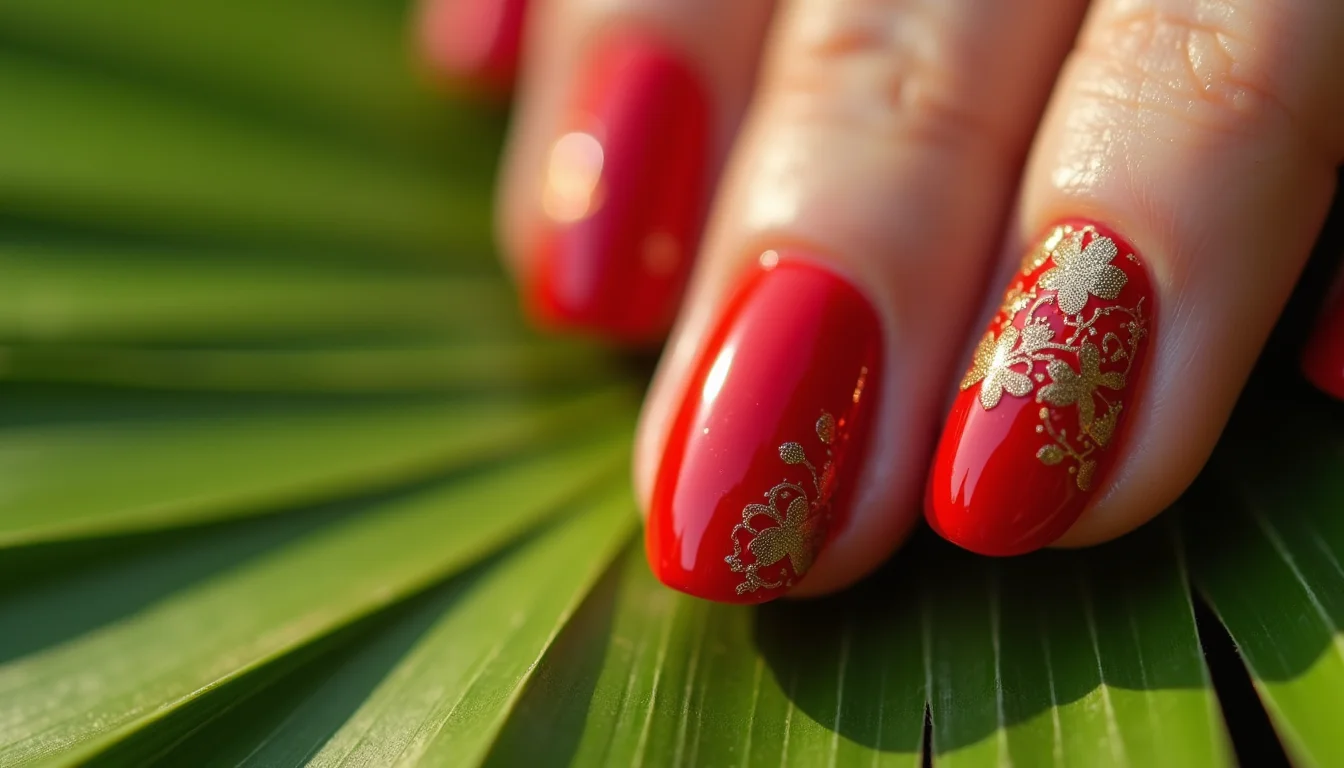 Aposte na união de esmalte vermelho brilhante com detalhes em dourado cintilante. Essa dupla é imbatível para quem busca um visual glamouroso e festivo.