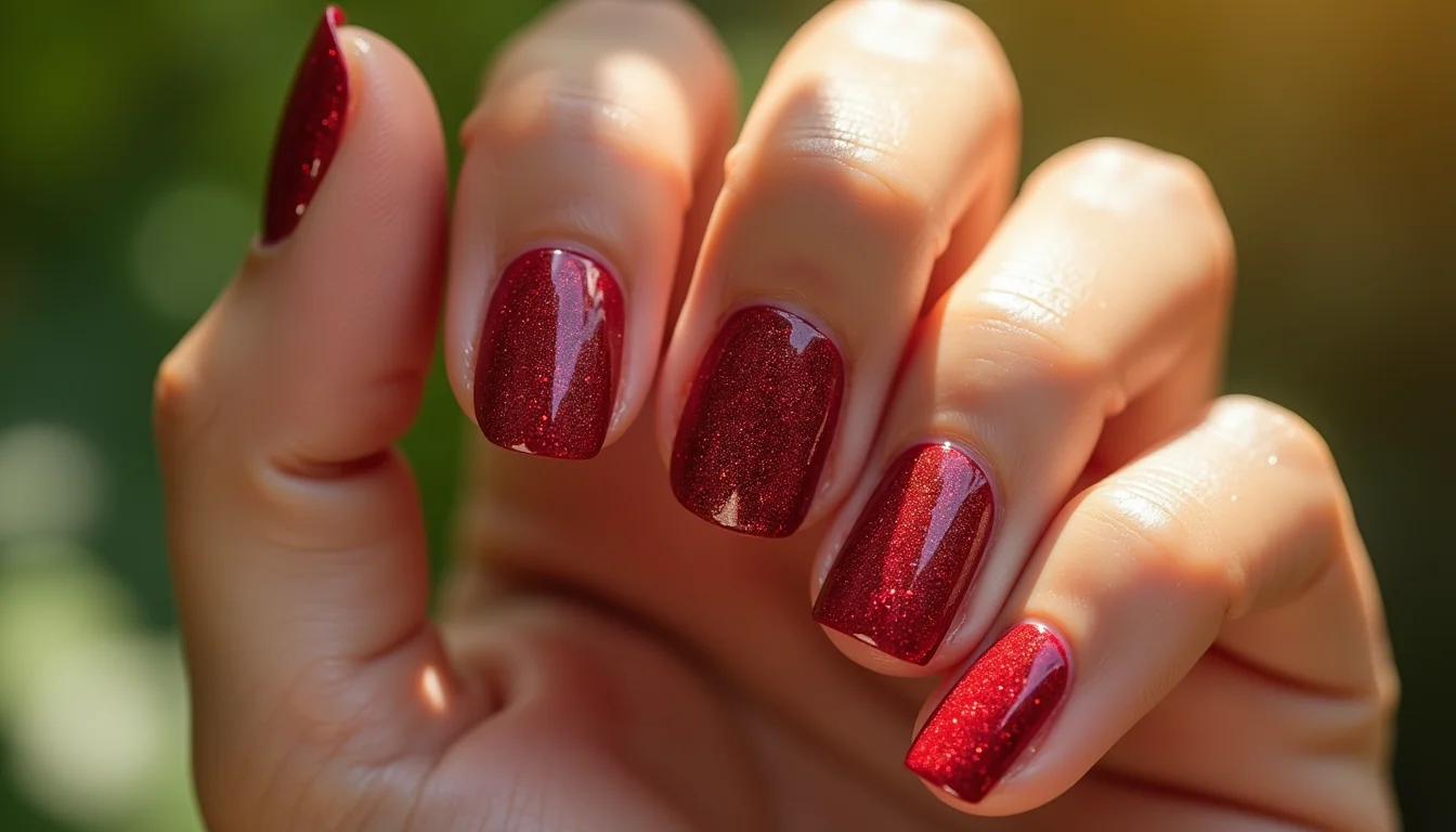 Um esmalte vermelho com acabamento cintilante, que reflete a luz de forma sutil, é perfeito para o dia a dia. Ele dá um charme extra sem ser chamativo demais.